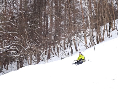 下りはソリすべりもしながら