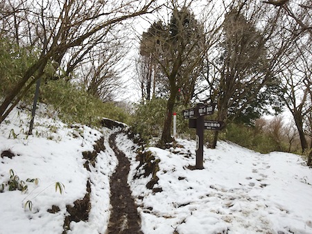 雪と泥でベチャベチャ登山道を