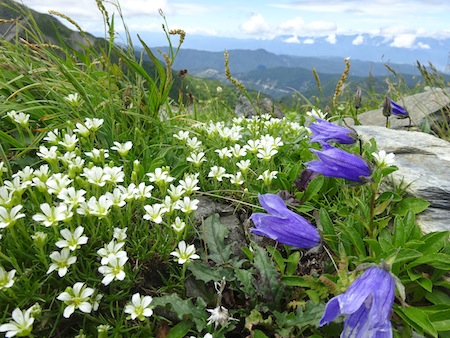 北岳から間ノ岳に向かう稜線もお花でいっぱい