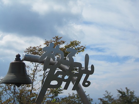 ご褒美の鐘を鳴らしてみるものの、せっかくの富士山は雲の中でした