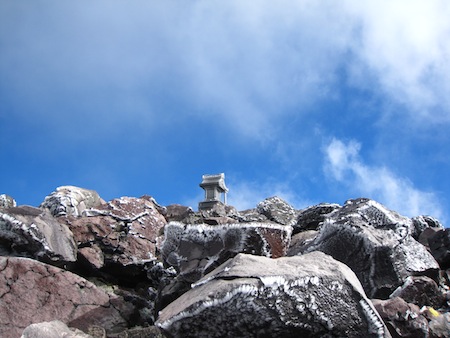でも、山頂の岩にはやはり霧氷がついています