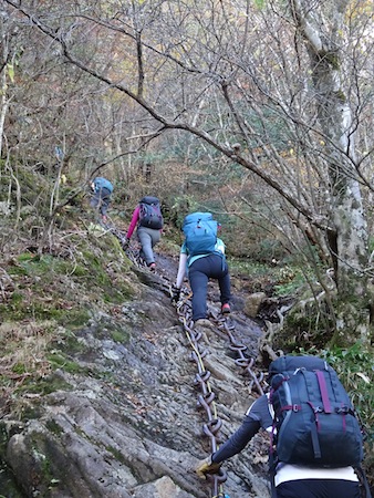下りは、鎖場をすべてまき