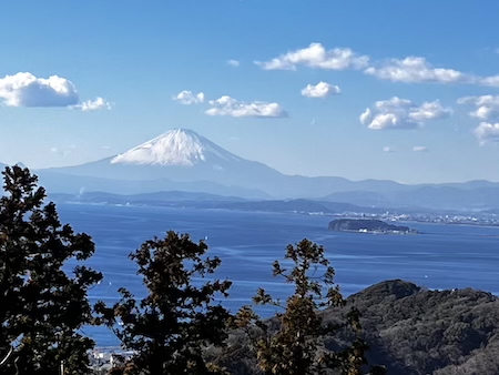 ピークからのぞむ海と富士山の眺めは、まるで浮世絵!